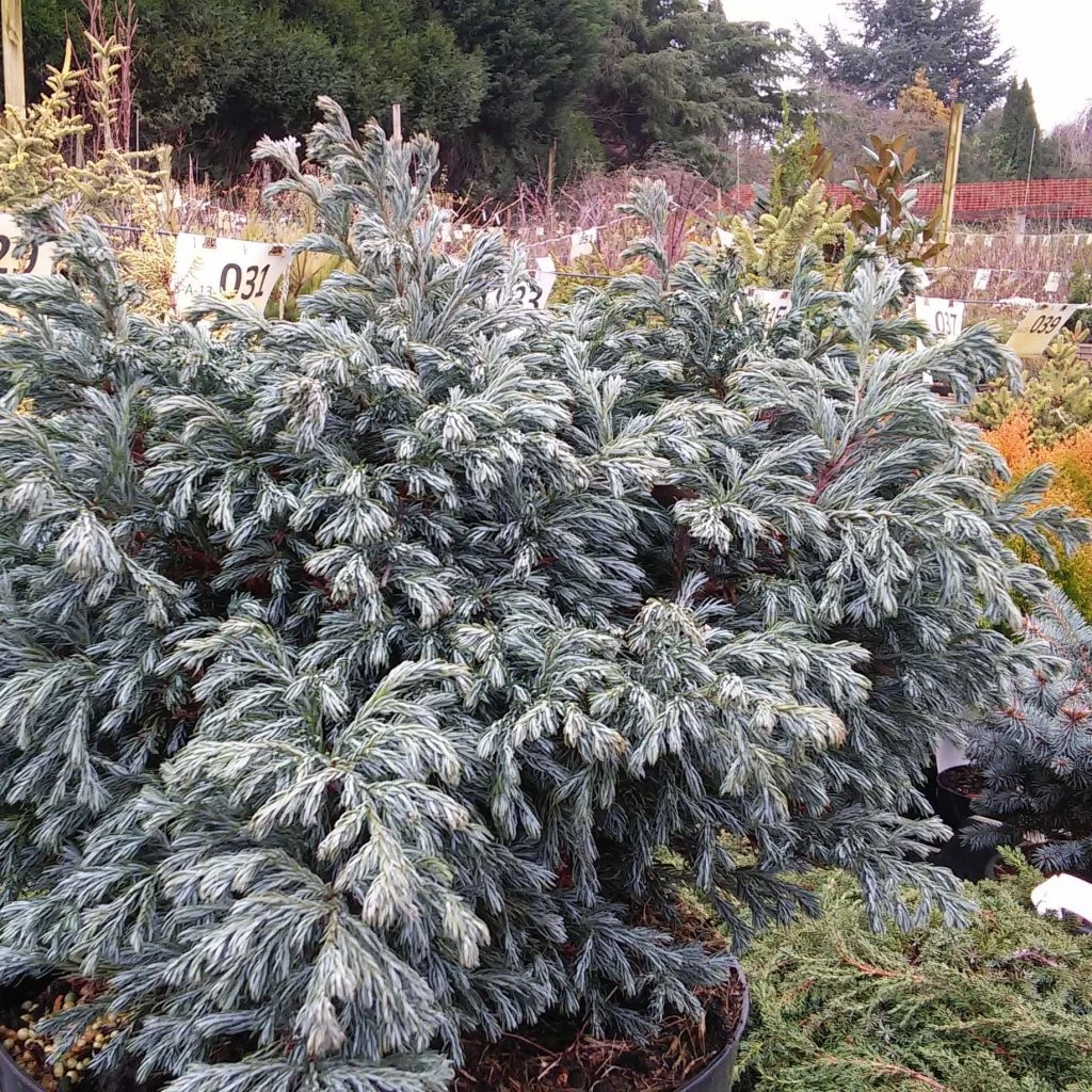 Le Chamaecyparis pisifera ‘Boulevard’ est une forme à développement réduit du Cyprès Sawara dont on admire le feuillage odorant, aussi doux au regard qu’au toucher. Ce conifère semble vêtu de panaches plumeux vert-bleutés dont les reflets argentés captent joliment la lumière, comme si sa ramure était en perpétuel mouvement, et sa belle ‘fourrure’ se teinte sous l’effet du froid de légères nuances violacées ou pourprées. Formant lentement un grand cône un peu flou, ce faux-cyprès est bien adapté aux petits jardins et pourra même être cultivé durant de nombreuses années dans un grand bac.