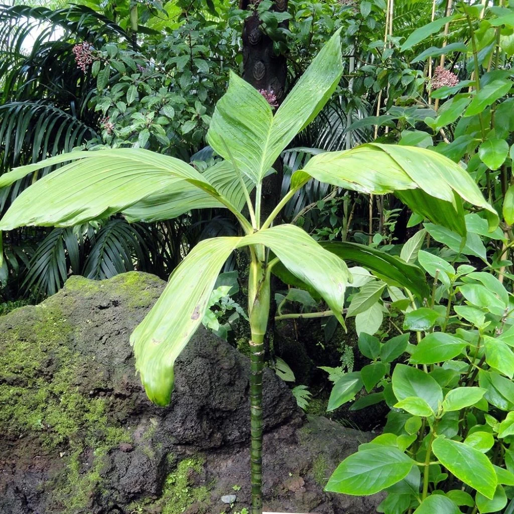 Plante arbustive à croissance plutôt lente de la famille des arécacées, très apprécié comme plante d’intérieur ou d’orangerie, le Chamadorea ernesti-augusti ne dépasse que rarement 1.80 m de hauteur pour 80 cm d’envergure. Ce palmier développe un tronc ou stipe très fin, élancés, annelé, évoquant une canne de bambou, d’où partent de grandes feuilles mesurant 50-60 cm de long pour 30 cm de large, imparfaitement découpées en deux segments ovales et pointus à leur extrémité, mimant une queue de sirène. Chaque segment, de couleur vert vif, est parcouru par de nombreuses nervures saillantes parallèles. Ce feuillage, qui persiste toute l’année, lui confère une apparence unique. Les fleurs apparaissent très rarement en culture, sur des plantes âgées, entre les feuilles. Chez ce palmier, il existe des individus mâles et des individus femelles. Les fleurs, de couleur jaune pâle, sont rassemblées sur des inflorescences évoquant de fins tentacules. Le palmier d’Ernest August périt en dessous de -1°C, redoute le soleil, mais il se contente d’un bon terreau fertile et frais.